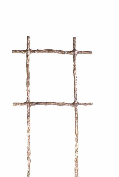 Le sculpteur joue sur les paradoxes et lui confère un aspect fragile, en étirant les formes et le manipulant comme un fil de fer.
